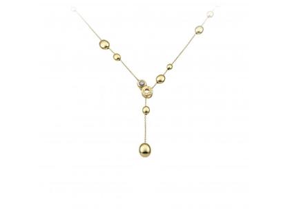 Y-Collier aus 750/- Gelbgold poliert, mit 1 Brillant 0,030 ct, Ankerkette mit "Perl-Elementen", Krokodil-Klemmverschluss, 50 cm lang