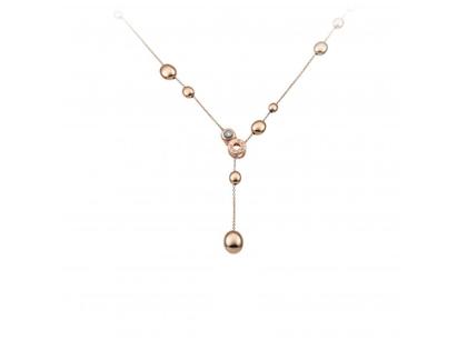 Y-Collier aus 750/- Roségold poliert, mit 1 Brillant 0,030 ct, Ankerkette mit "Perl-Elementen", Krokodil-Klemmverschluss, 50 cm lang