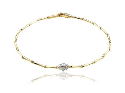 Armband aus 750/- Gelbgold poliert, Brillanten 0,100 ct TW (G) vsi, Karabinerveschluss, 18 cm lang