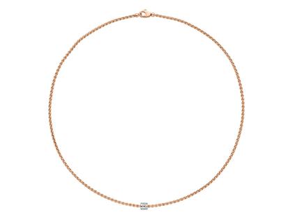 Collier aus 750/- Roségold und 750/- Weißgold, poliert, mit Brillanten zusammen 0,170 ct TW vsi, 43 cm lang