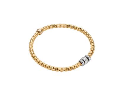 Fope Eka Tiny Flex'It Armband Gelbgold mit 3 Weißgold-Ronden und Brillanten 0,18ct flexibel