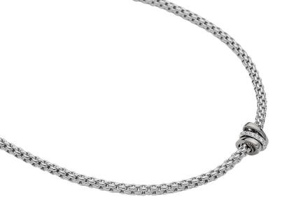 Collier 750/- Weißgold, poliert, runder Querschnitt, Durchmesser ca. 3,2 mm, Länge 43 cm, Ronden 750/- Weißgold mit Brillanten 0,10 ct TW vsi