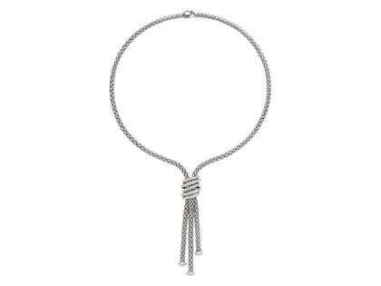 Collier aus 750/- Weißgold poliert mit Mittelteil aus 750/- Weißgold mit Brillantenpave zusammen 1,63 ct TW vsi, 43cm lang, Karabinerverschluss