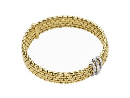 Fope Panorama Armband mit 3 Ronden Gelbgold mit Brillanten Pave