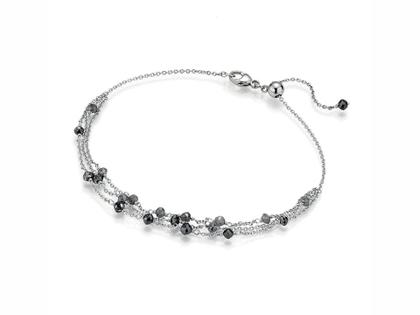 aus 750/- Weißgold, Diamand Bead ca. 1,116 ct - 1,364 ct anthrazit, Diamand Bead ca. 1,134 ct - 1,386 ct schwarz behandelt, Karabinerverschluss 18,5 cm lang, 3-reihig