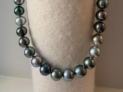 Halsschmuck mit 44 Maruteaperlen multi intense rund 9,0 - 10,0 mm, Lüster AA, Spotlevel: 3 - ohne Verschluss