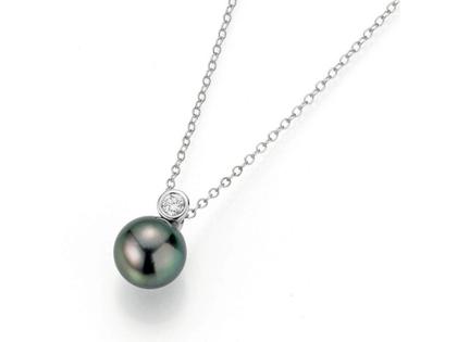 750/- Weißgold, 1 Tahiti-Zuchtperle, rund 9 - 10 mm, 1 Brillant 0,120 ct TW vsi, Karabinerverschluss, Länge 42 - 45 cm