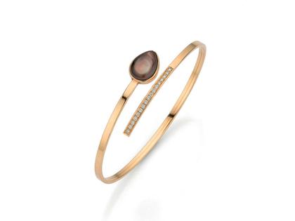 Armspange aus 750/- Rosegold poliert, 17 Brillanten ca. 0,255 ct TW vsi, Perlmutt braun behandelt