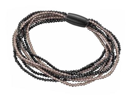 Stahl schwarz ionisiert, Rauchquarz, Spinell schwarz fein matt, ca. 18 cm, Magnetschließe, 9-reihig