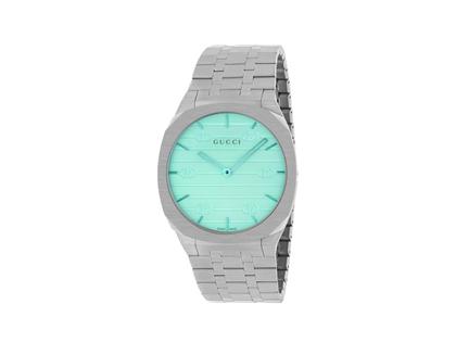 Gucci 25H Ozeanblau Quarz Edelstahl 38mm weißes Zifferblatt Metallband YA163409