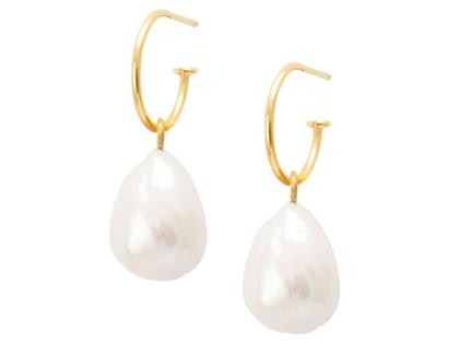 Creolen klein aus 925/- Silber vergoldet, mit beweglichen weißen Süßwasserperlen