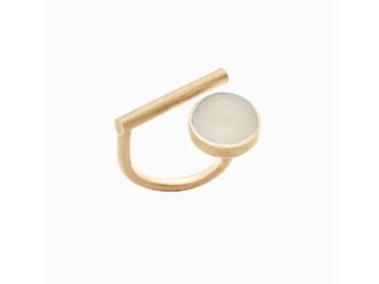 Simplicity Ring aus 925/- Silber, gelbgoldfarben PVD beschichtet, mattiert, mit eingefasstem Mondstein