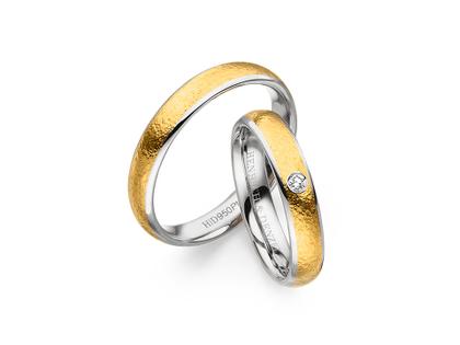 Henrich & Denzel Unita Trauringpaar Platin mit Feingold gewölbt mit Brillant 0,030ct