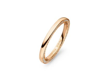 Ring aus 750/- Roségold poliert, gewölbt, innen poliert, mit 50 Brillanten zusammen 0,250 ct FW vsi, seitlich gefasst