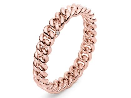 handgefertigtes Armband aus massivem polierten 750/- Rotgold Rouge Royal, 12 mm breit, mit einem Brillanten 0,05 ct TW (G) vvsi am Verschluss, 20 cm lang