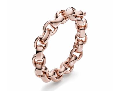 handgefertigtes massives Glieder-Armband aus 750/- Rotgold, poliert, 14 mm breit, integrierter Karabinerverschluss, 1 Brillant 0,12ct TW(G) vvsi, 21 cm lang