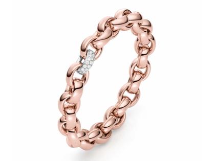 handgefertigtes massives Glieder-Armband aus 750/- Rotgold, poliert, 11 mm breit, integrierter Karabinerverschluss, 1 Glied mit Brillanten zusammen 0,60ct TW(G) vvsi, 20 cm lang