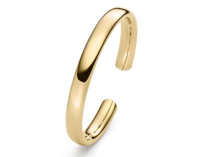 handgefertigter Armreif aus 750/- Gelbgold, poliert, 9 mm breit, oval, flexibel, geöffnete Armspange