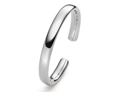 handgefertigter Armreif aus 750/- Weißgold, poliert, 9 mm breit, oval, flexibel, geöffnete Armspange
