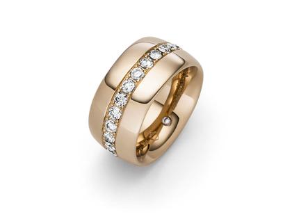handgefertigter Ring aus 750/- Roségold, poliert, 11 mm breit, Brillanten 1,52 ct TW vvsi
