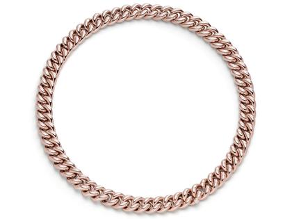 handgefertigte Halskette aus massivem poliertem 750/- Rotgold Rouge Royal, 12 mm breit, mit einem Brillanten 0,05 ct TW (G) vvsi am Verschluss, 45 cm lang