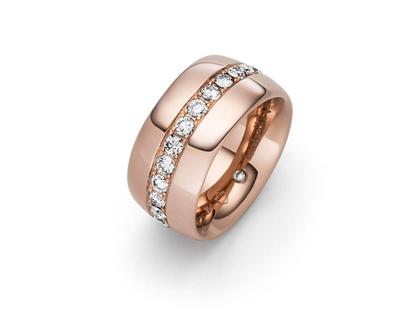 handgefertigter Ring aus 750/- Rotgold Rouge Royal, poliert, 11 mm breit, Brillanten 1,52 ct TW vvsi