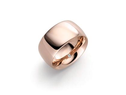 handgefertigter Ring aus 750/- Rotgold Rouge Royal, poliert, 11 mm breit, innen Brillanten 0,015 ct TW vvsi