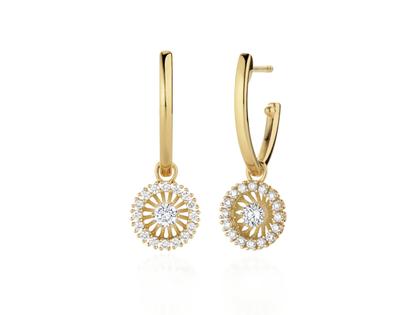 Ohrhänger aus 750/- Gelbgold poliert, Anhänger mit beweglichem Brillant, 34 Brillanten zusammen 0,488ct TW (G) si, mit Ohrmutter