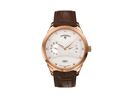Automatikwerk Kaliber J830.5 mit Gangreserveanzeige, beidseitiger Aufzug, 48 Stunden Gangdauer, 28.800 Halbschwingungen je Stunde,  gebläute Schrauben, Brücken und Rotor mit Genfer Streifen veredelt,  weißes, mehrteiliges Zifferblatt, segentierte Sekundenanzeige, 750/- Roségold, Durchmesser 41,8 mm, verschraubter Glasboden, entspiegeltes Saphirglas, Alligatorlederband mit Dornschließe aus Roségold, wasserdicht bis 3 bar