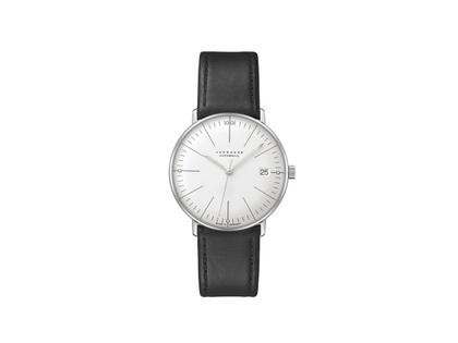 Junghans Max Bill Kleine Automatic Edelstahl 34mm silbernes Zifferblatt schwarzes Lederband