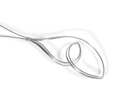Die Schmuckstücke von Jutta Ulland kommen mit jeweils zwei Blätter- oder Tropfenformen aus einem fortlaufenden Draht. Die Kollektion ist schlicht und edel, zeitlos und elegant.