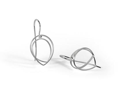 Die Schmuckstücke von Jutta Ulland kommen mit jeweils zwei Blätter- oder Tropfenformen aus einem fortlaufenden Draht. Die Kollektion ist schlicht und edel, zeitlos und elegant.