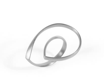 Die Schmuckstücke von Jutta Ulland kommen mit jeweils zwei Blätter- oder Tropfenformen aus einem fortlaufenden Draht. Die Kollektion ist schlicht und edel, zeitlos und elegant.