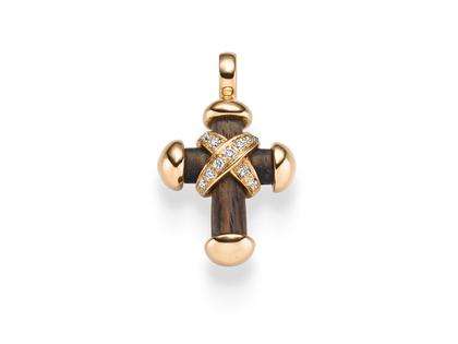 Leo Wittwer Crosses Anhänger klein braunes Grenadillholz Roségold mit Brillanten 0,330ct