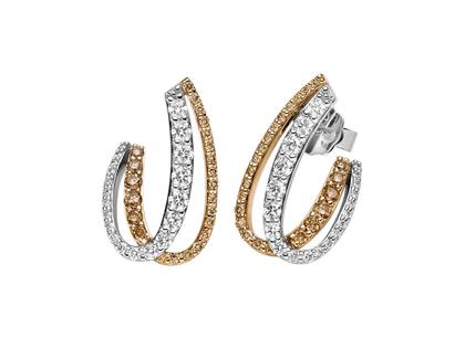 Ohrstecker aus 750/- Weißgold mit Roségold, poliert, mit weißen Brillanten 0,55 ct TW(G) vsi und braunen Brillanten 0,40 ct