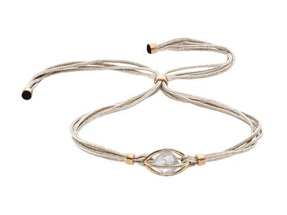 Armband mit 750/- Roségold, Käfig mit ungeschliffenem Diamant ca. 2,4 ct, 190 mm lang, Paracord beige