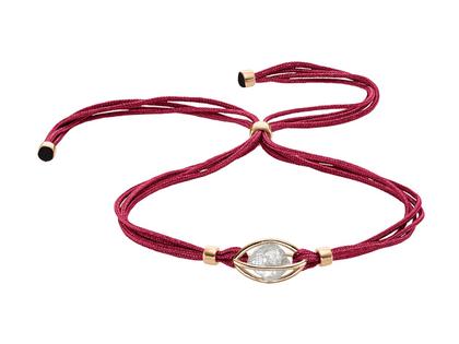 Armband mit 750/- Roségold, Käfig mit ungeschliffenem Diamant ca. 2,4 ct, 190 mm lang, Paracord rot