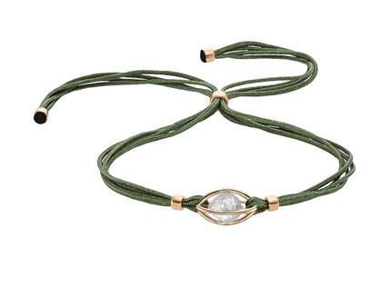 Armband mit 750/- Roségold, Käfig mit ungeschliffenem Diamant ca. 2,4 ct, 190 mm lang, Makramee grün