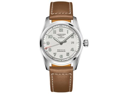 Longines Spirit Automatik Edelstahl 40 mm silbernes Zifferblatt braunes Lederband