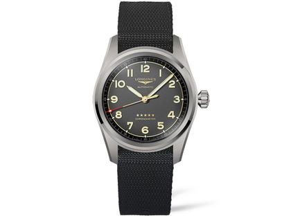 Longines Spirit Automatik Titan 42 mm schwarzes Zifferblatt schwarzes Textilband