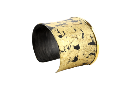 Designschmuck aus Polen, massiver aber dennoch ganz leichter Armreif aus Karbon 925/- Silber vergoldet, gefleckt, offen, 45,0 mm breit