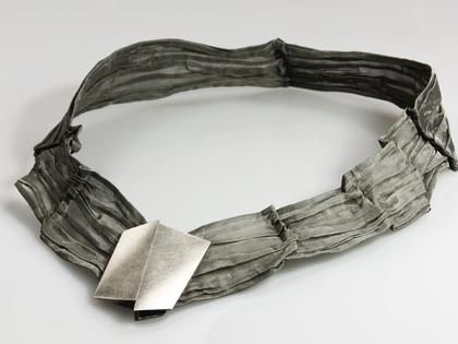 Designschmuck aus Polen, raffiniertes Collier aus anthrazitfarbenem Stahlgewebe (graphit), 42cm lang, mit geschwärztem 925/- Silber-Magnetverschluss