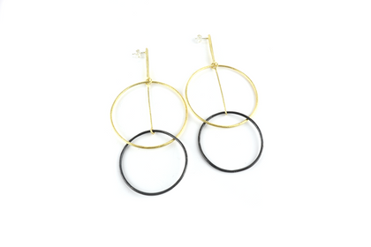 Designschmuck aus Polen, leichte Ohrhänger 925/- Silber vergoldet und oxidiert, kleiner Ring Durchmesser 33,0 mm, großer Ring Durchmesser 46,0 mm