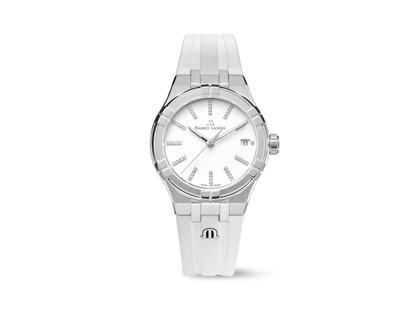 Maurice Lacroix Aikon Quartz Edelstahl 35mm weißes Zifferblatt weißes Kautschukband