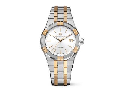 Maurice Lacroix Aikon Quartz Edelstahl 40mm silbernes Zifferblatt zweifarbiges Metallband