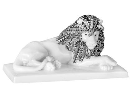 Der Löwe aus dem Jahr 2018 gehört zur Figurengruppe "Big Five" des jungen Plastikers Maximilian Hagstotz, der diese erstmals in der langen Meissener Tradition der Tierplastiken in einer Serie fertigte. Die äußerst aufwendige Staffage betont die Mähne des Löwen und damit sein charakteristisches Aussehen. Die eckige Formgestaltung und auch das Dekor ist an afrikanische Holzplastiken angelehnt. Dabei steckt die äußerst filigran ausgearbeitete Staffage nicht nur voller Symbolkraft, sondern zeugt von vollendet ausgeführtem Handwerk.