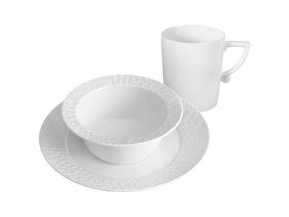Set bestehend aus Kaffeebecher, Teller und Schüssel aus Meissener Porzellan®, weiß