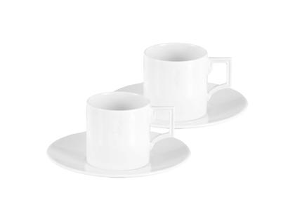 Meissener Porzellan®, weiß, Espresso dell’Arte besteht aus zwei Espressotassen mit Untertassen, Logo als Relief