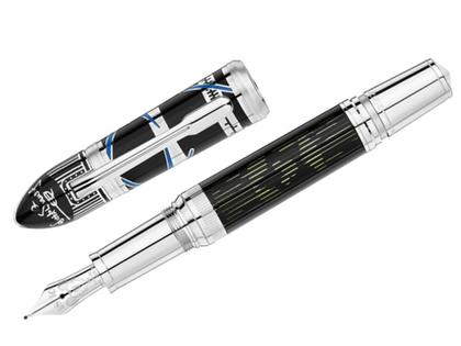 Die besondere Form der Montblanc Schreibgeräte ist von der legendären Einschienenbahn des Disneylands in Florida inspiriert. Der Clip hat die Form des Schornsteins aus dem Film „Steamboat Willy“ (1929). Der Korpus ist sind aus einem dunklen Edelharz gefertigt und weist als Scanimation Effekt eine flackernde Mickey Mouse auf. Die eingravierten Zahlen sind eine Hommage an den ersten vollständigen Cartoon-Film (Schneewittchen, 83 Min und Weltpremiere 21.12.1937 LA). Die Windmühle in der Multiplane Kamera ist ein Verweis auf den Film The Old Mill (1937), der als erster Film mit dieser Kamera gedreht wurde. Die Kappe ist aus platinertem Metall mit farbigen Lackintarsien gefertigt. Füllhalter in 146er Größe.