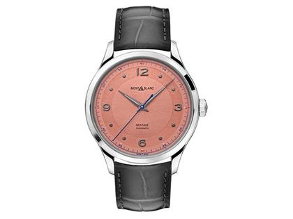 Montblanc Heritage Automatic 40 mm Edelstahl lachsfarbenes Zifferblatt und graues Lederband